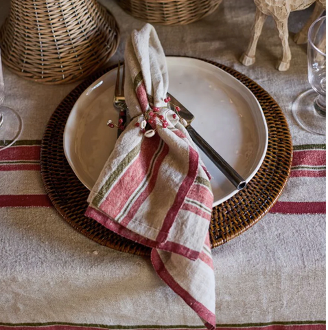Add a festive yet timeless touch to your table with the Red or Green Selvedge Stripe Linen Napkins. This napkin captures the charm of modern farmhouse style. It’s perfect for Christmas celebrations, yet versatile enough for year-round use.