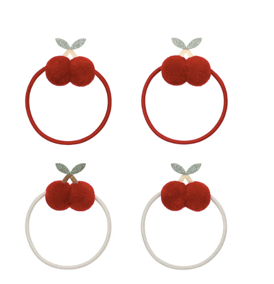 Add a fun and fruity twist to their hair with these adorable cherry ponies, each finished with a pair of super soft, bright red pom pom cherries for a bright pop of cheerful charm!